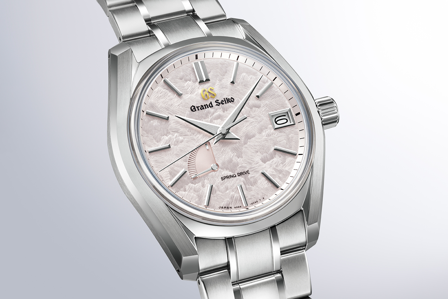 This model features a case design that reinterprets the 62GS, which debuted in 1967 as Grand Seiko’s first automatic mechanical watch. The dial expresses a beautiful spring scene that can only be encountered for a brief moment as the seasons change. It is powered by the Spring Drive Calibre 9R65, an automatic movement equipped with a power reserve indicator and offering a power reserve of approximately 72 hours when fully wound.
