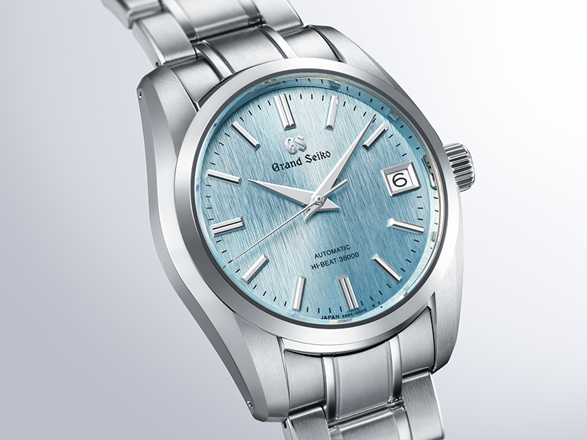 This watch inherits the traditional style of the 9S mechanical series while introducing a new dial expression. Inspired by an “icefall” one might encounter on Mt. Iwate, the peak visible from the Grand Seiko Studio Shizukuishi, during harsh winter months, the dial captures a striking natural spectacle. An icefall occurs when flowing water gradually freezes in sub-zero temperatures. This enchanting scene is expressed through the ice-blue coloured dial, which features a pattern balancing dynamism and delicacy. The movement is the Calibre 9S85, a high-frequency mechanical movement vibrating at 10 beats per second within a compact 37mm case. Both the case and bracelet are made of Ever-Brilliant Steel, which shines whiter than conventional stainless steel while offering exceptional corrosion resistance.