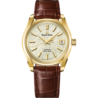 The 62GS debuted Grand Seiko’s first automatic movement. This new creation uses a modern interpretation of the 62GS case design along with a dial that conveys a unique moment in the seasonal landscape of Japan. In a first for a 62GS model that is not a limited edition, 18k yellow gold has been used to craft the case. The dial’s light-green colour evokes the budding leaves that follow the cherry blossoms at the end of spring, which glimmer in the light as they reflect morning sun. With its soft comfort and easy wearability, the leather strap harmonizes with the dial’s subtle colour to impart an elegant impression. Created by the skilled craftspeople of the Grand Seiko Studio Shizukuishi, the Hi-Beat Calibre 9S85 achieves its stable precision thanks to its high frequency of 36,000 vph.