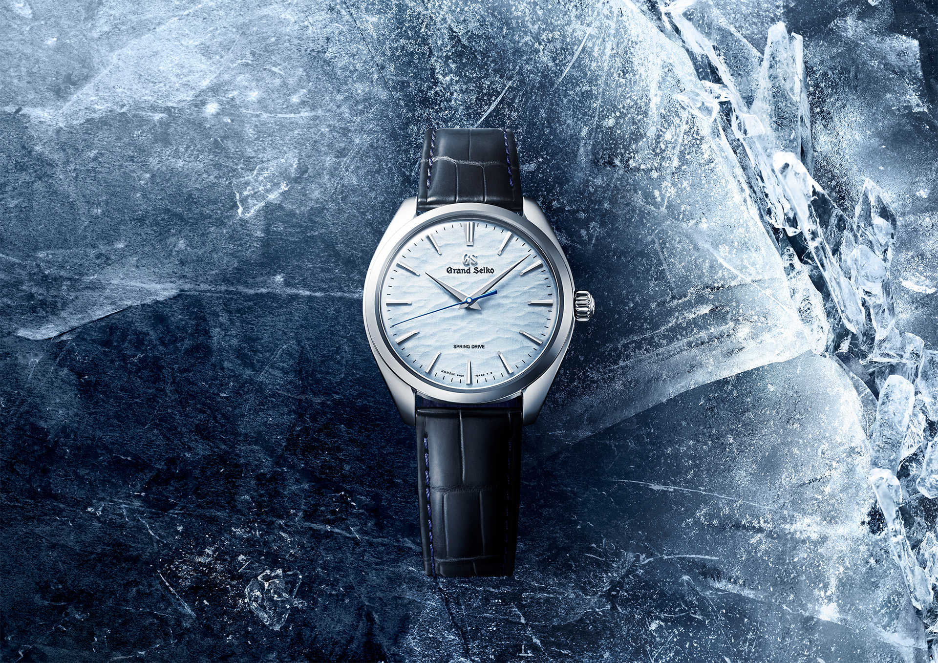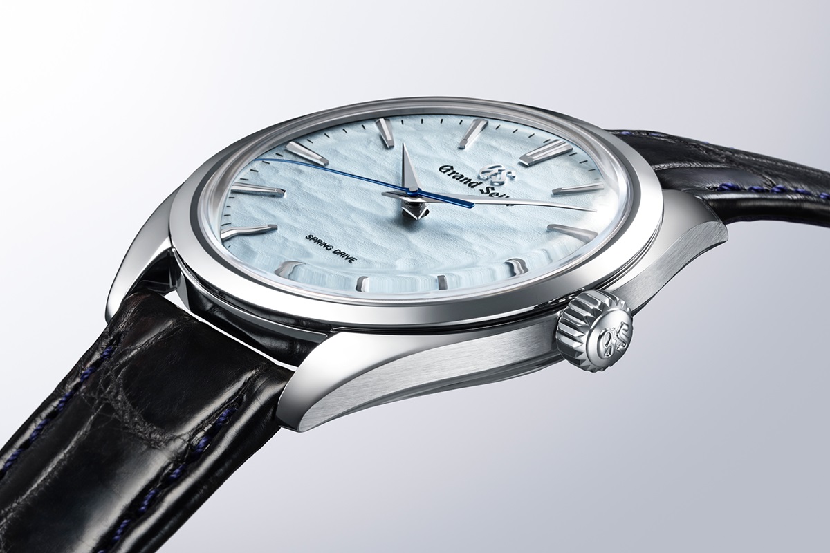 True or not, the legend has inspired the craftspeople of the nearby Shinshu Watch Studio to create a dial of exquisite subtlety for this hand-winding Spring Drive timepiece. It has the colour, feel, and texture of ruptured ice on the surface of Lake Suwa.